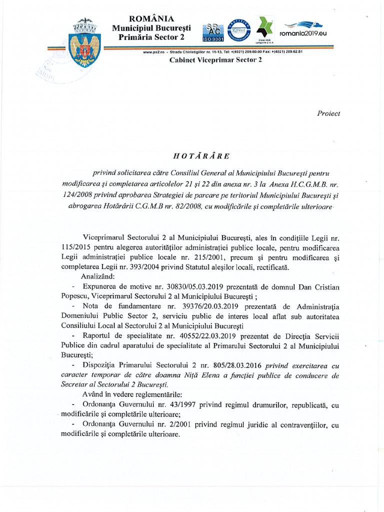216 2006 privind parcarea vehiculelor grele. Primaria generala administreaza orasul si este condusa de primarul general. I din legea nr. 124 2008 privind parcarea pe domeniul public.