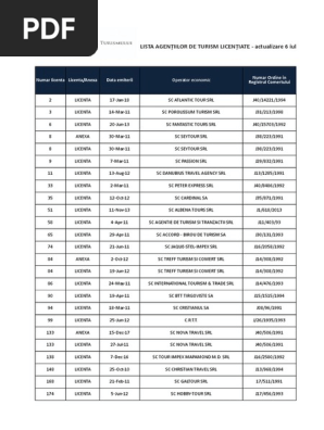 3 3 14 2011 10823080 775 5 23 2019. Lista agentiilor de turism licentiate si a unitatilor turistice acreditate. Lista contine atat adresele si numerele de telefon fax ale agentiilor touroperatoare cat si ale celor detailiste. 8 3 30 2011 1473660 48385.