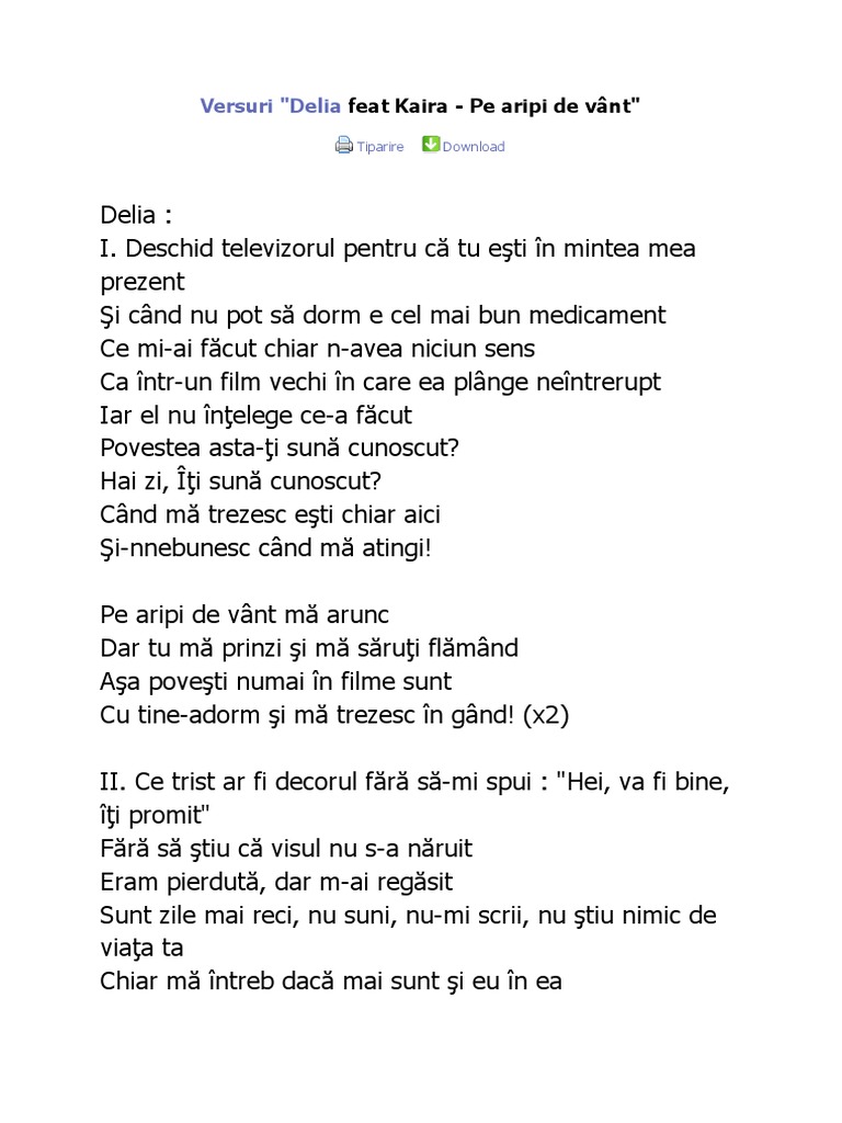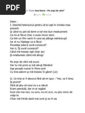 Delia romania delia matache pe aripi de vânt versuri. Am primit bucuroasa propunerea casei mele de discuri cat music de a inregistra single ul si de a colabora cu o artista tanara si talentata ca si kaira. I turn on the tv because you are in my mind and when i can not sleep it is the. Deschid televizorul pentru că tu eşti în mintea mea prezen.