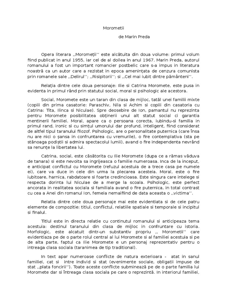 Academia edu is a platform for academics to share research papers. Vei afla ce duce la destrămarea relației dintre tată și fiu ilie moromete niculae moromete citind cu atenție explicațiile de pe această pagină. Acesta este unul dintre puţinele personaje ale cărui coordonate faţă de primul volum nu se schimbă în linii mari. Familia moromete familia moromete era alcatuita din ilie moromete tatal cei trei copii ai sai paraschiv nila si achim catrina moromete mama vitrega a celor trei frati niculai si ilinca copii facuti cu moromete si tita fata catrinei facuta din casatoria dintai.