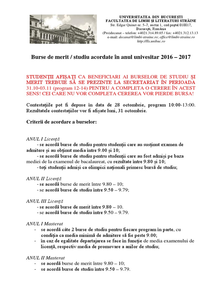 Absolventii de liceu care si au depus dosarele la facultatile de medicina din intreaga tara vor afla daca se regasesc pe lista viitorilor studenti. Studii iudaice rezultate studii iudaice link alternativ limbi moderne aplicate engleză b limbi moderne aplicate link alternativ orice probleme referitoare la liste pot fi semnalate prin email la adresa admitere lls unibuc ro. Taxa de înscriere se achită la înscriere în clădirea facultății de limbi și literaturi străine din str. Brosura admitere 2018 subiecte admitere.