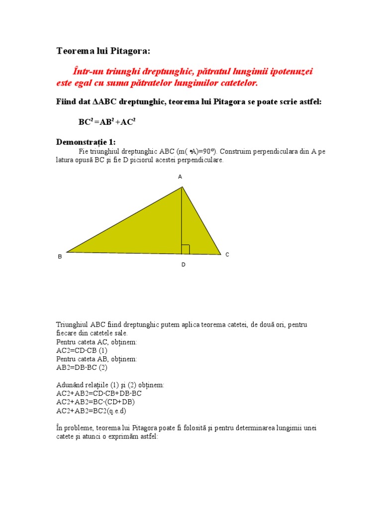 Teorema lui pitagora este poate teorema cu cele mai multe demonstratii. C 2 a 2 b 2 adică. Vrei sa vezi mai multe exemple.