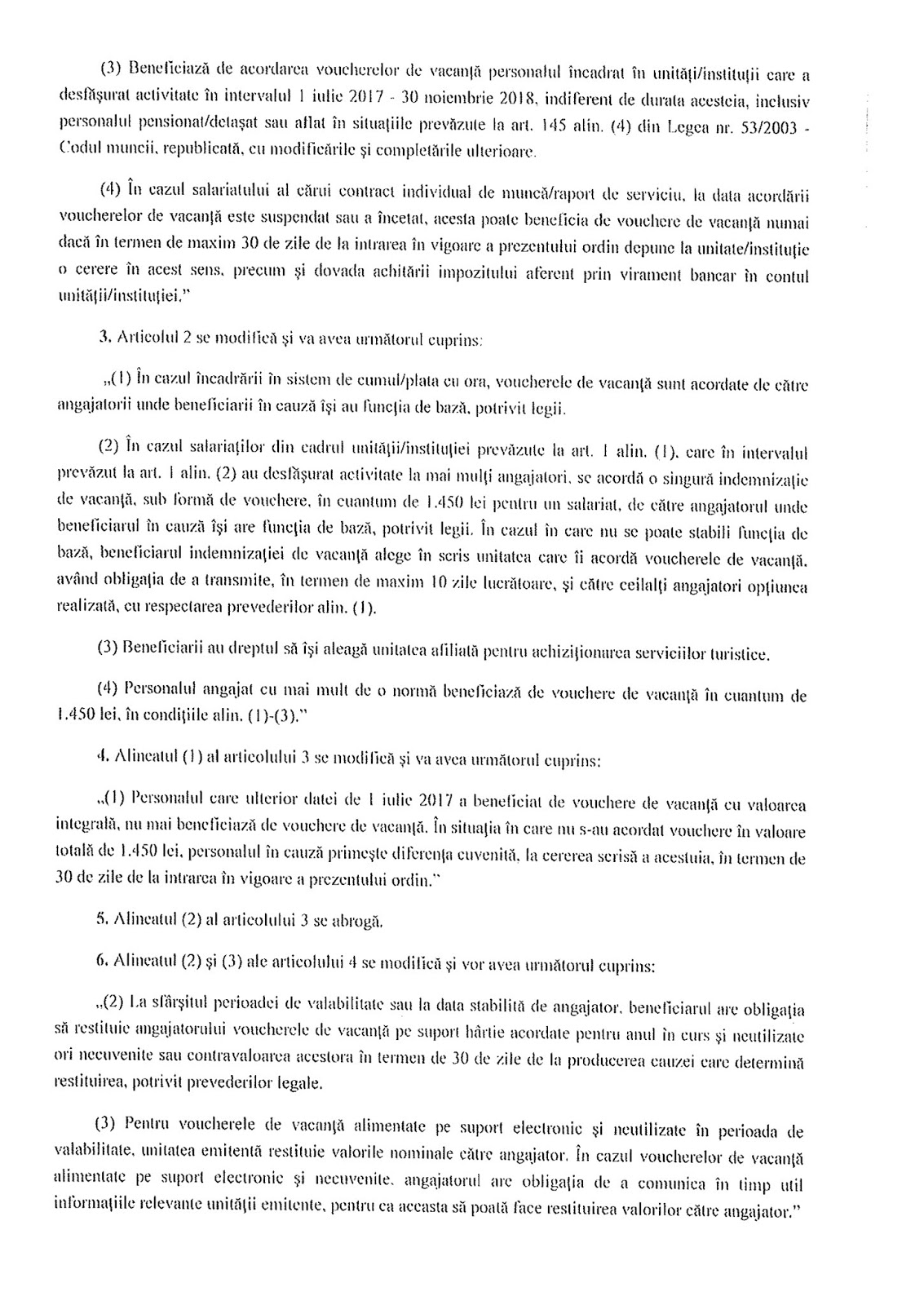 Nu se primeste decat acolo unde salariatul are norma de baza. In cazul salariatului al carui contract individual de munca raport de serviciu la data acordarii voucherelor de vacanta este suspendat sau a incetat in cursul anului 2020 acesta poate beneficia de vouchere de vacanta numai daca in termen de maximum 30 de zile de la data intrarii in vigoare a prezentului ordin depune la unitate institutie o cerere in acest sens precum si dovada. Realitatea oltului. Tichetele de vacanţă erau abrogate până la 31 decembrie 2017 dar noi am dus abrogarea până la 30 iunie 2017 în aşa fel încât de la 1 iulie 2017 să se poată acorda aceste vouchere.